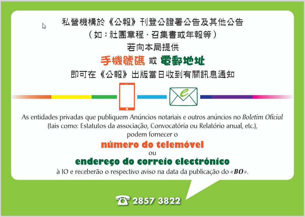 Direcção dos Serviços de Assuntos Marítimos e de Água - Aviso sobre a indicação como local provisório para a realização de operações de comércio externo a ponte-cais provisória para a Empreitada de concepção e construção do segmento sul da Linha Leste do Metro Ligeiro, destinada à Empreitada de concepção e construção do segmento sul da Linha Leste do Metro Ligeiro. |